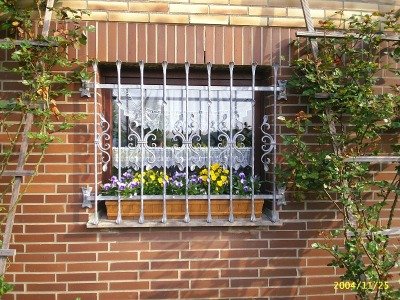 Barock Schmiedeeisernes Fenstergitter zusätzlich mit Glasbruchmelder gesichert